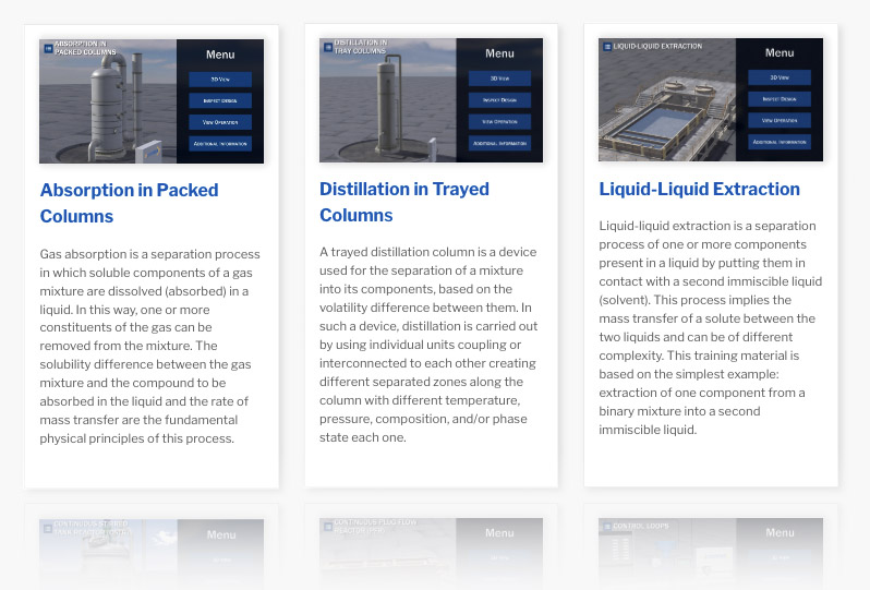 Our methodology blends hands‑on process‑simulation exercises with targeted theoretical sessions, enhanced by 3D visualizations of equipment internals. This combination helps participants grasp complex concepts by directly applying them in realistic scenarios.